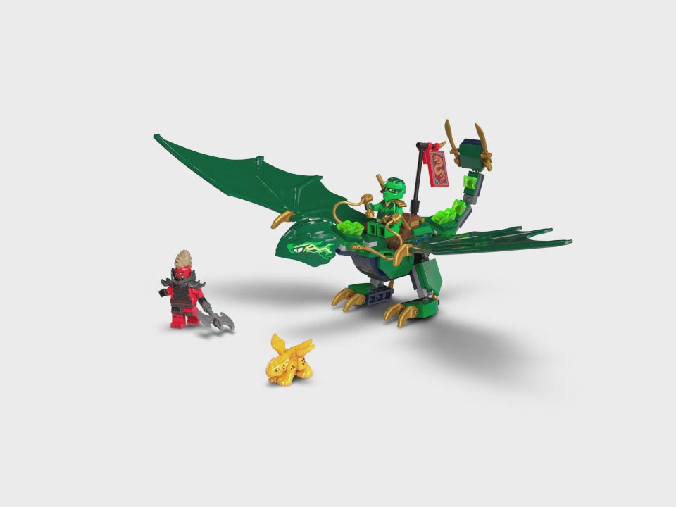 - Dragón NINJAGO® articulado: El modelo construible Dragón Verde del Bosque de Lloyd cuenta con cola, cuello, patas, manos y grandes alas móviles, así como con una montura para colocarle una minifigura en el lomo