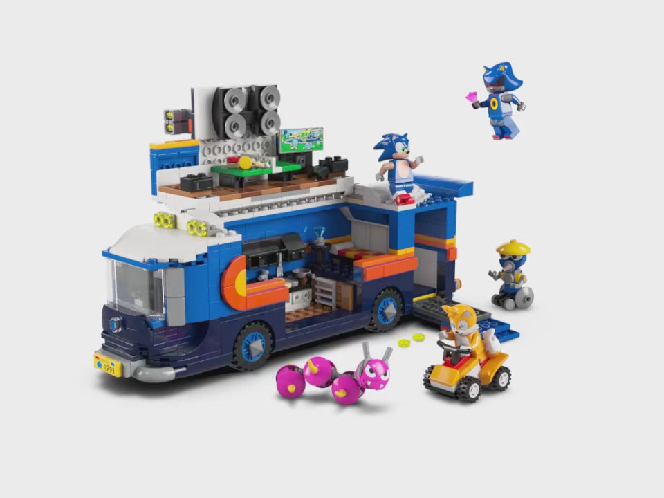 - Juguete de construcción LEGO®: El vehículo de operaciones cuenta también con espacio de almacenamiento con puerta/rampa y función interactiva de lanzamiento para enviar a Tails en el quad a perseguir a Burrobot y Caterkiller