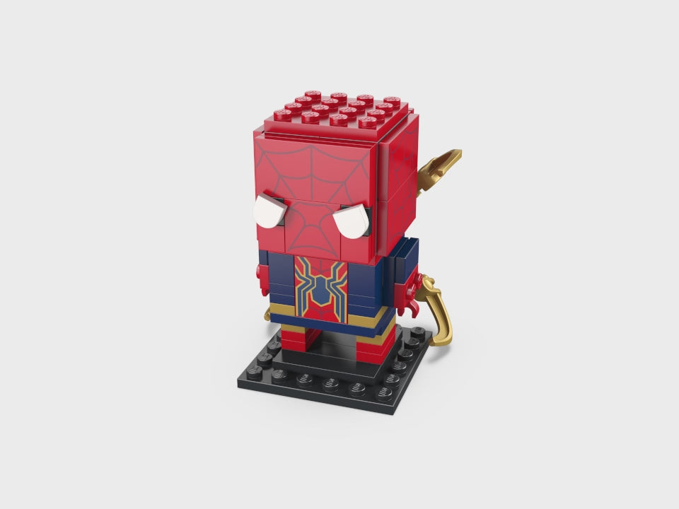 - Set LEGO® BrickHeadz™ Iron Spider-Man: Los fans de Marvel, los niños y las niñas de 10 años o más podrán construir esta colorida versión con armadura del popular lanzatelarañas al estilo BrickHeadz