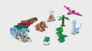 - Juego imaginativo: Los niños construyen un T. rex, un Pterosaurio, un Triceratops, un Brontosaurio, un T. rex bebé, una palmera y un volcán de juguete, y luego dan forma a sus propias creaciones