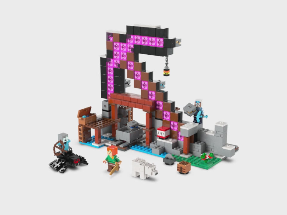 - Figuras coleccionables LEGO® Minecraft®: El set incluye minifiguras de Alex, un minero y un jinete arácnido errante, además de una araña que puede llevar encima una minifigura y una figura de un oso polar