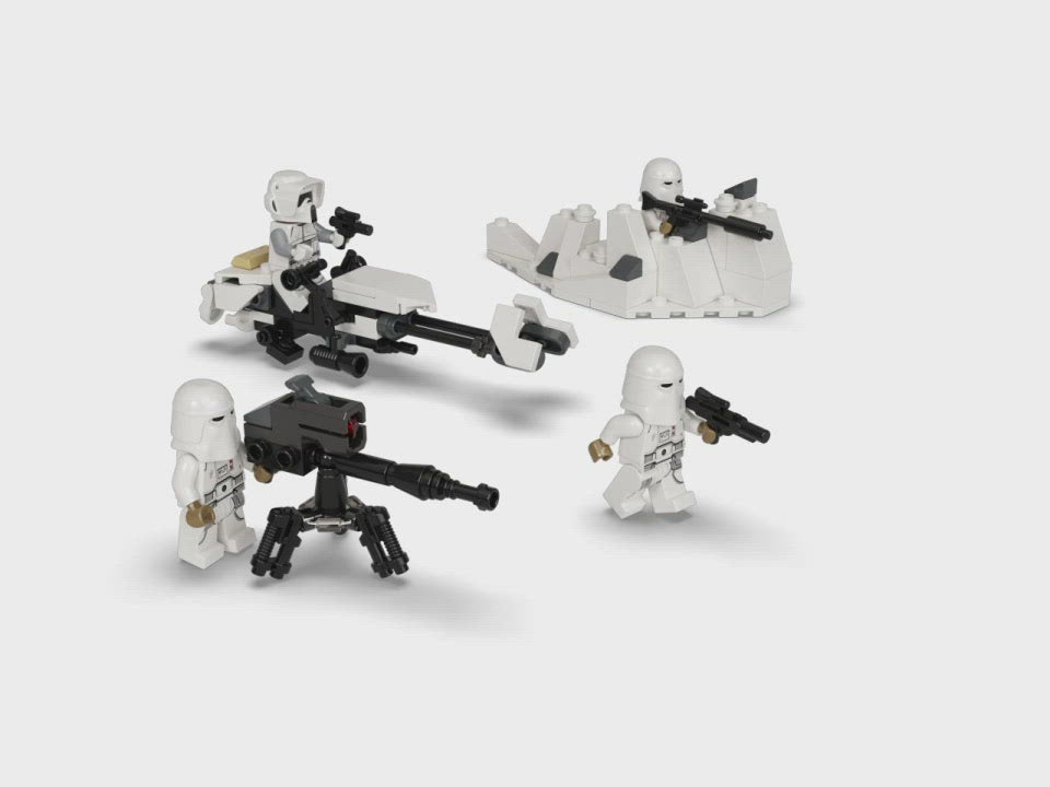 - Minimodelos: Una moto speeder imperial de Hoth (que puede combinarse con el set AT-AT [75313]), un bláster de repetición pesado E-Web que dispara y una trinchera de nieve con munición extra