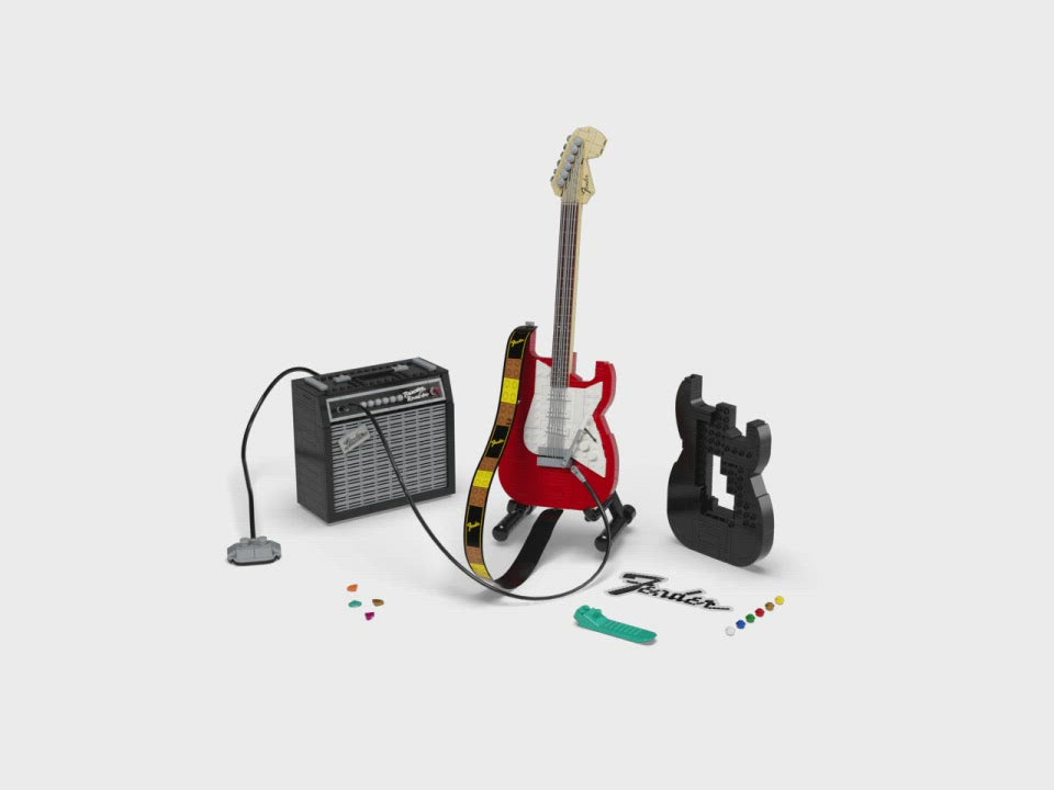 Cuenta con seis cuerdas, clavijas de afinación móviles, selector de pastillas y barra de trémolo.