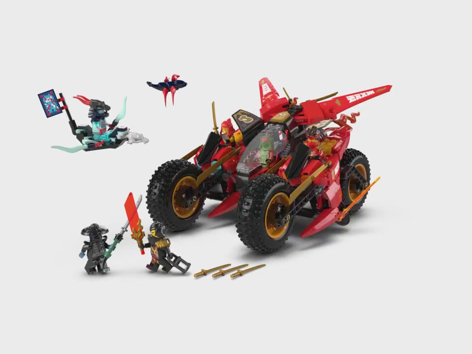 - Vehículo ninja “3 en 1” para peques: Con el Vehículo de Combate Ninja, los niños y las niñas a partir de 8 años podrán interpretar emocionantes aventuras aéreas y terrestres inspiradas en la temporada 3 de NINJAGO®: El Renacer de los Dragones
