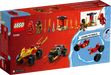 El set Batalla en Coche y Moto de Kai y Ras (71789) es perfecto para iniciar a los niños a partir de 4 años en el emocionante mundo de NINJAGO® y en las alegrías de la construcción con ladrillos LEGO®. Este fabuloso juego cuenta con un coche dragón, un vehículo todoterreno, minifiguras de Kai y Lord Ras, un rayo azul en un soporte de exposición y 2 elementos que representan llamas para que los peques interpreten la apasionante acción de la serie para televisión NINJAGO: El Renacer de los Dragones. Un set LEGO para principiantes que les enseña a construir Este set LEGO NINJAGO de vehículos ofrece a los niños a partir de 4 años una fantástica experiencia de construcción y juego. Dentro de la caja, cada bolsa de ladrillos contiene un modelo y un personaje para construir que permiten a los peques poner en marcha la acción de inmediato. El ladrillo para principiantes incluido les proporciona una base parcialmente construida para ayudarlos a dar los primeros pasos.