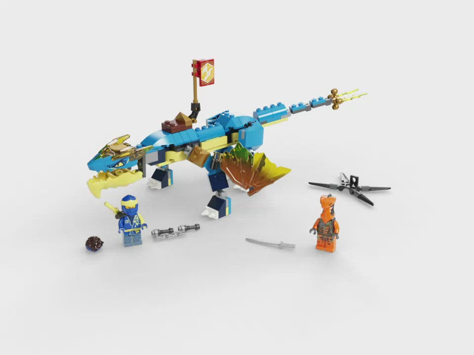 A los pequeños ninjas de 6 años o más les encantará crear sus propias historias llenas de diversión con el juego Dragón del Trueno EVO de Jay (71760). El dragón de juguete, que posee patas, brazos, mandíbula, cabeza y cola letal articulados, se puede equipar con alas más grandes y fuertes.