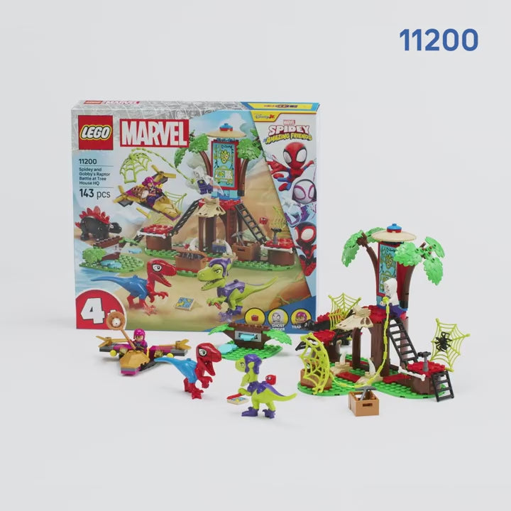 - Aventuras al estilo LEGO® en una casa del árbol: Los niños se unen a Trapster, Spider Fantasma, Gobby-Raptor, Spidey-Rex, Dino-Spin y Trace-E e interpretan divertidas historias con héroes, villanos y dinosaurios en la casa del árbol de la jungla